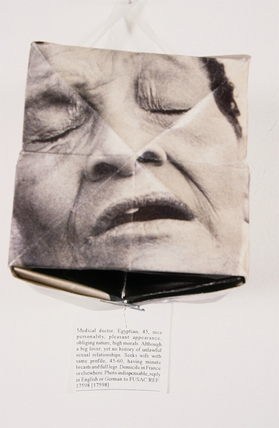 Medical doctor, Egyptian, 45folded paper, pin, personal ad 3" X 3" X3"1994